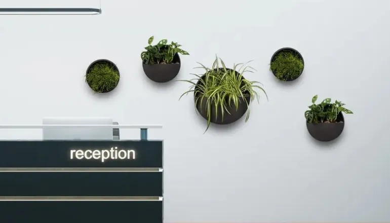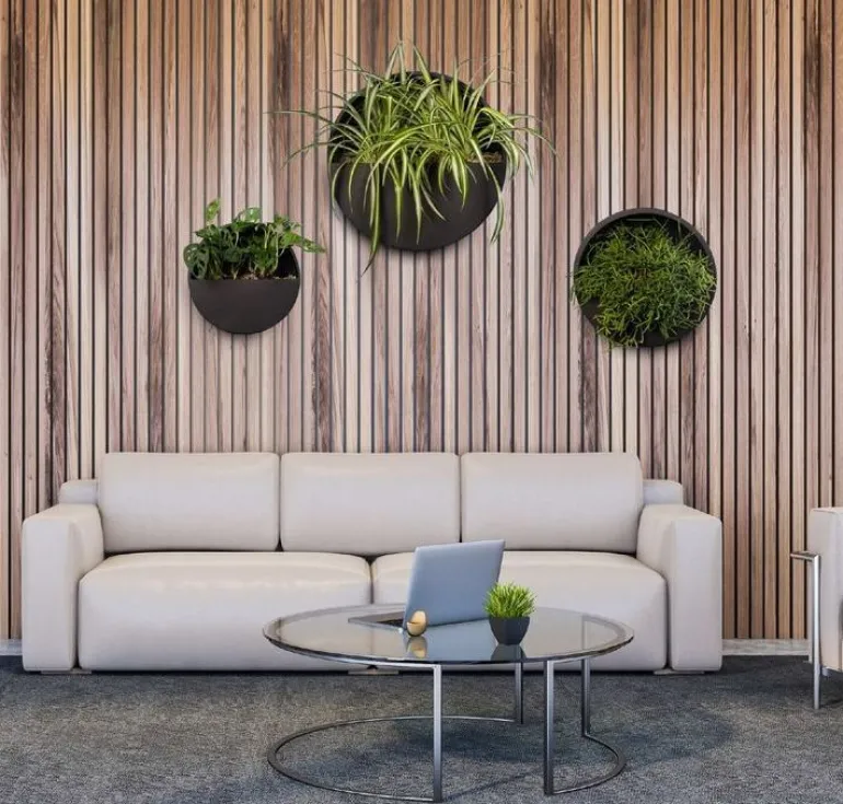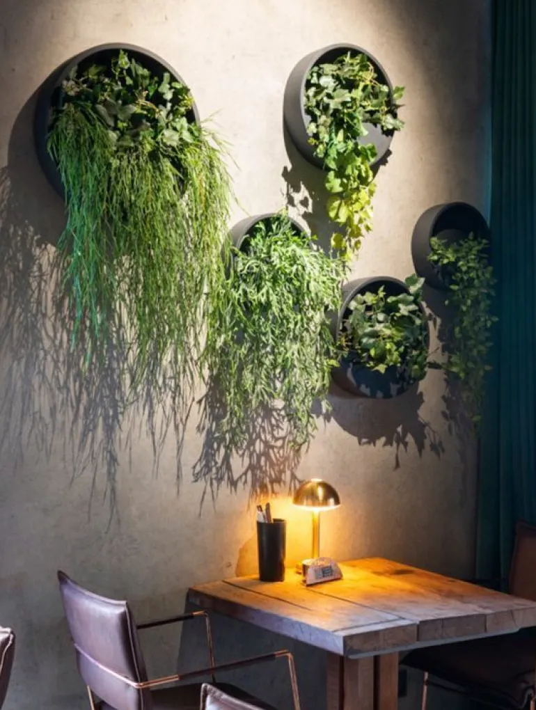 Vandtæt indendørs vægkrukke / ampel i fiberstone materiale til både planter og blomster som dekoration på væggen – super smart vægpotte, f.eks i køkkenet til krydderurter.