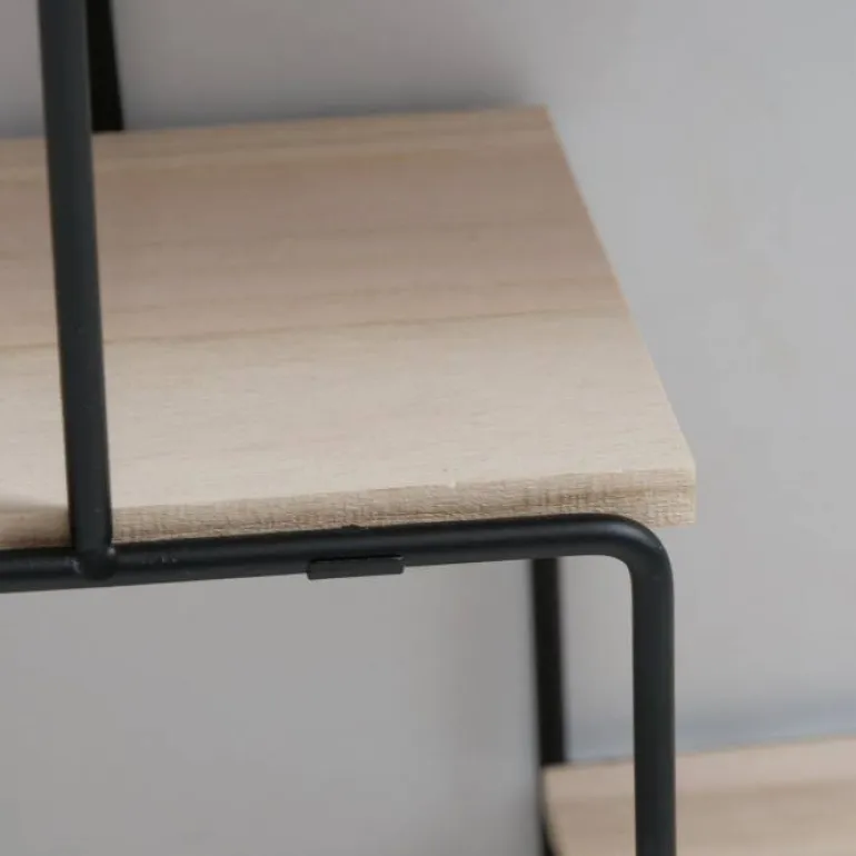 Super fin til småting, lys og fotos på væggen. Sort jern med træhylder der kan bruges overalt i din bolig. Også fin på badeværelset til cremer, parfume, hårbørster mv.