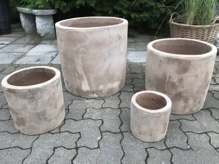 Flot sæt runde Terracotta cylinder krukker – Sæt med 4stk krukker