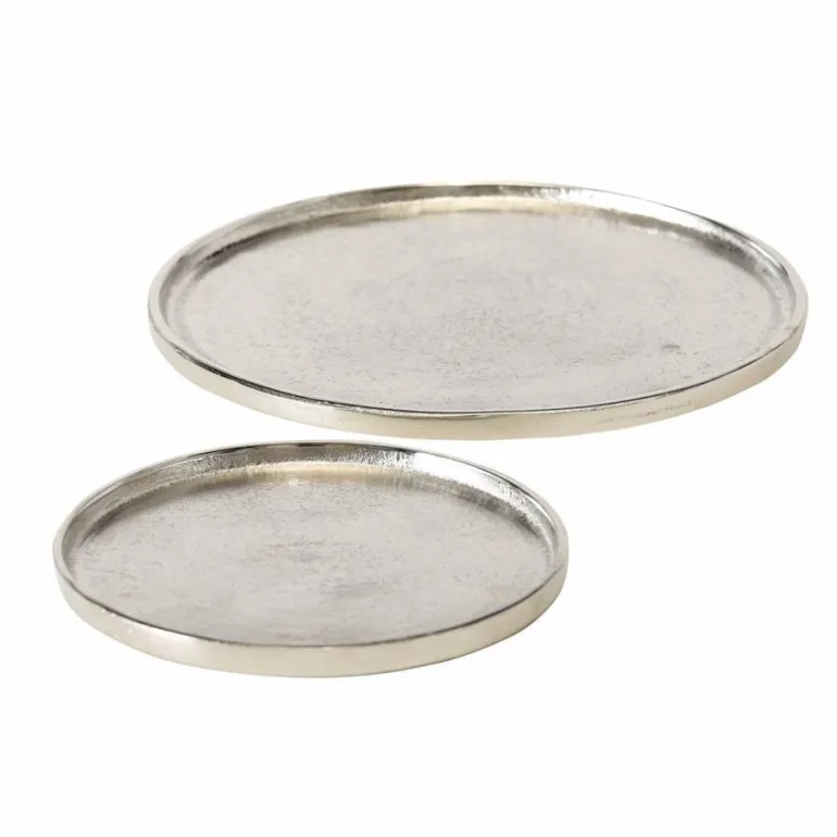 Flot sæt med 2stk runde fade / skånere i rå upoleret silver mat aluminium til f.eks bloklys eller dekorationer