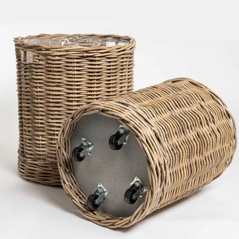Runde rattan krukker med håndtag og hjul – indendørs og udendørs flettede pilekrukker H.54xØ.43 + H.56xØ.50