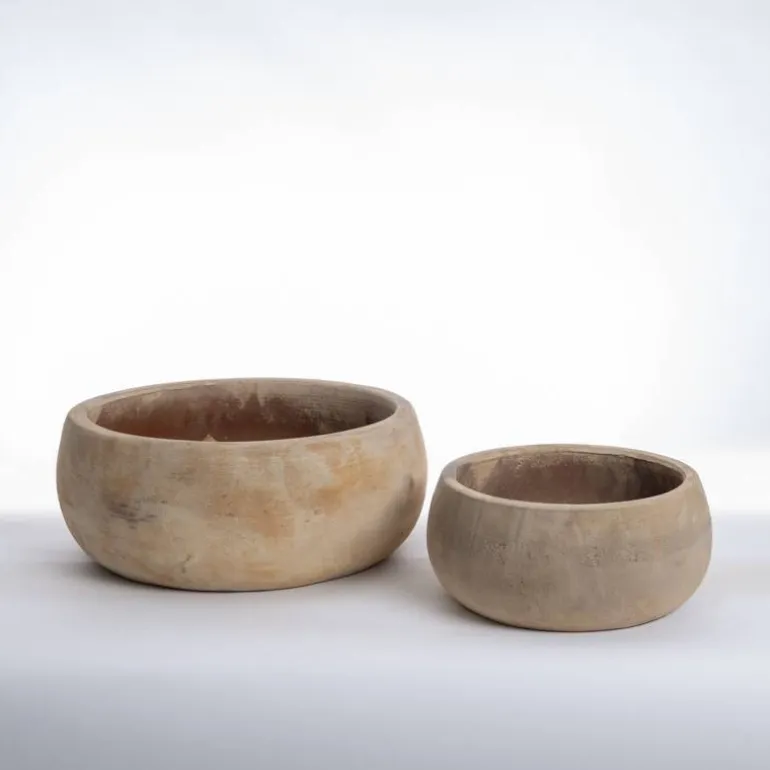 Sæt med 2stk runde lave bowler i antikbrun Terracotta – Ø.32 + Ø.46