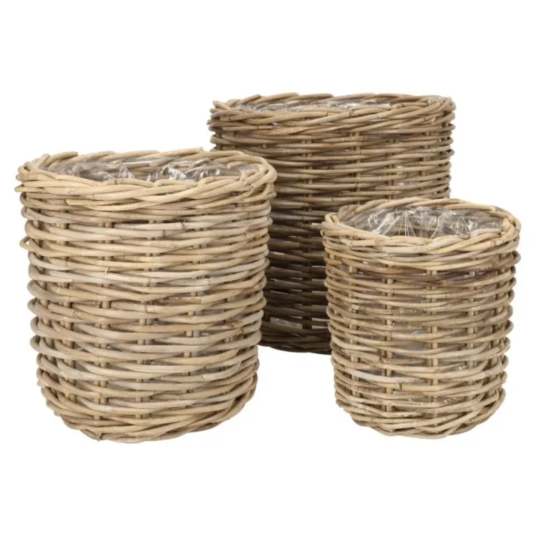 Sæt med 3stk flettede rattanpotter med plastindsats – Ø.27 + 32 + 37cm