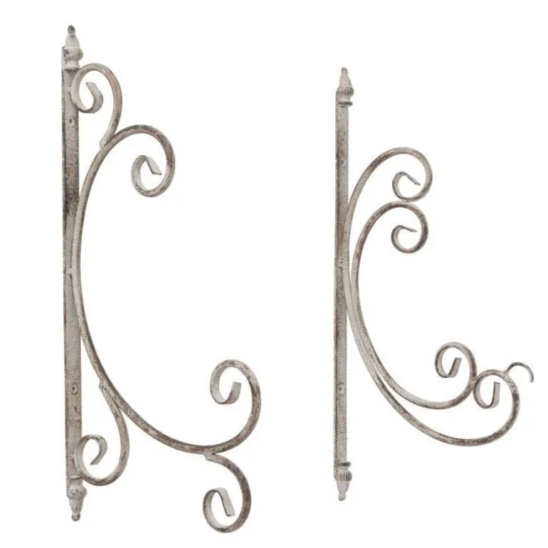 Flot antik vægkrog til ampler og lanterner i rusty brown antikhvid jern – 2 modeller