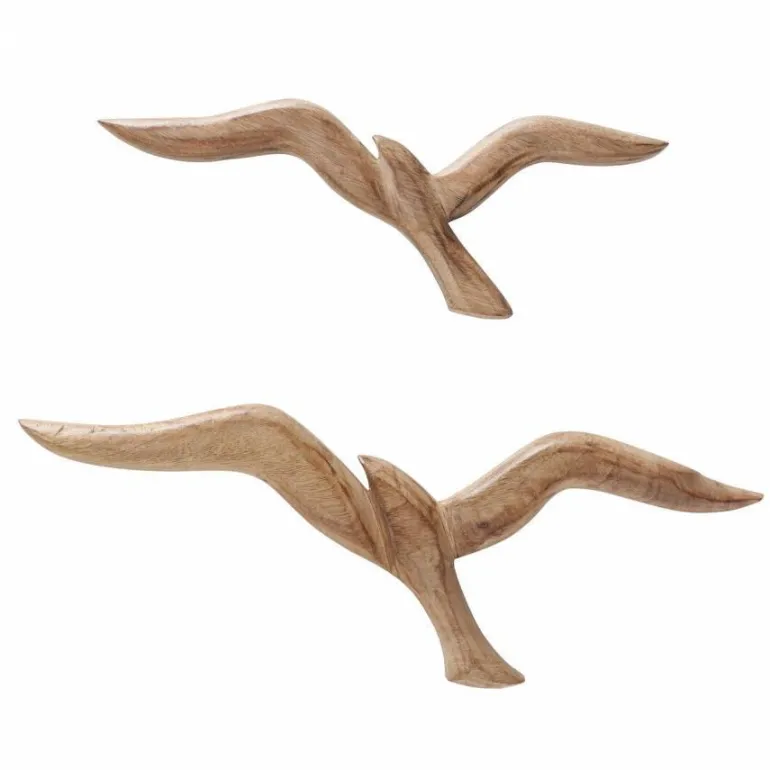 Seagulls fugle vægdekoration med 2 flotte fugle i mangotræ – 36cm + 46cm