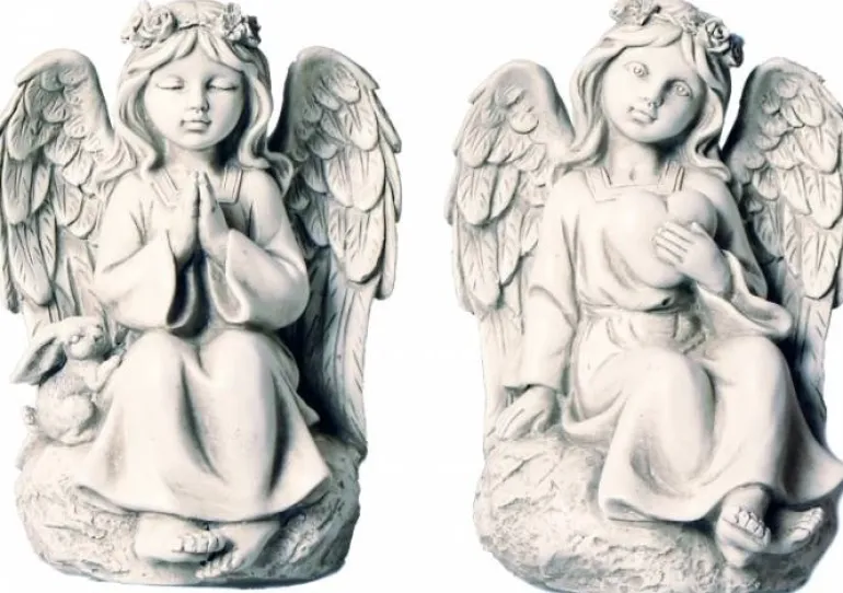 Meget dekorative og smukke engle med 2 forskellige udtryk og med fine detaljer. Englene kan stå både ude og inde, men skån dem for vinterens hårde vejr ved at tage dem ind når frosten kommer.