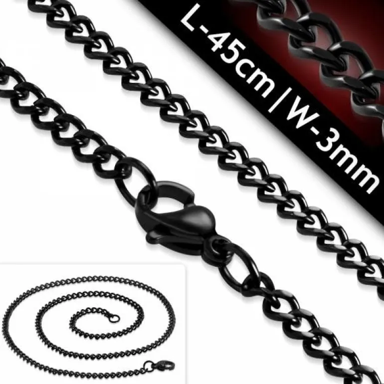Flot 3mm sort stålhalskæde 45cm