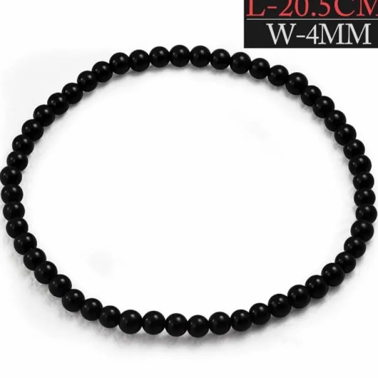 Stræk armbånd med 4mm sorte agatkugler elastisk stræk så det sidder perfekt – ideelt som kombinationsarmbånd sammen med andre fede armbånd.