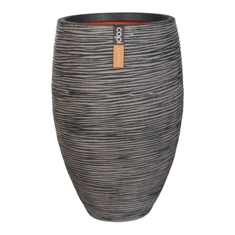 Indendørs og udendørs sort eller antrazit krukke med ribber / mønster