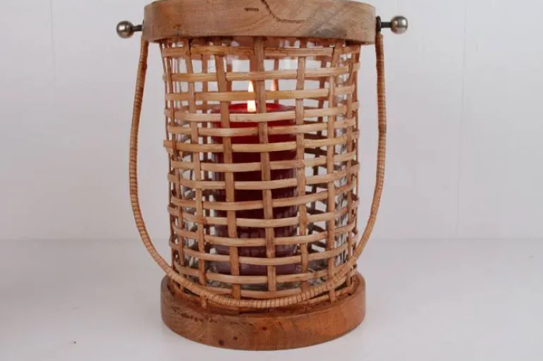 Hyggelig håndlavet lanterne som giver et smukt lys igennem den flettede pil – top og bund i massiv træ. Med hank og glasindsats. Gør sig rigtig godt i vindueskarme og på bordet.