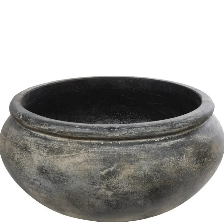 Dekorativ lav krukke / plantebowle i fiberbeton – Antrazit mat twist