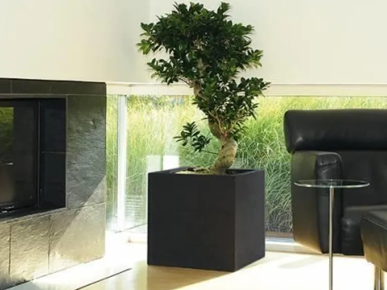 Indendørs store krukker i fiberstone med firkantet form og i en fremragende kvalitet. Krukkerne fås i sort og sand med let sandstruktur finish der står godt til den moderne boligstil. Leveres uden bundhul og er vandtætte.