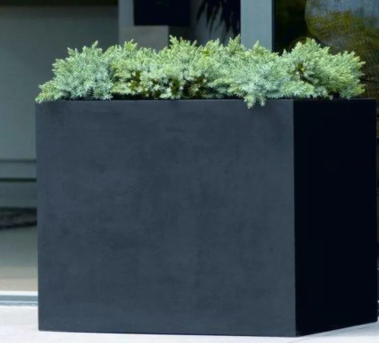 Neptun / Store vandtætte kubiske firkantede krukker – sort eller grå – 5 størrelser med let sandstruktur.