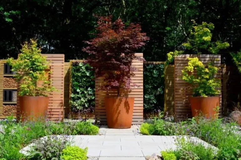 Volumen krukker i 2mm corten stål til store planter og træer – kommer med bundhul samt 15mm små fødder og er frostsikre. 7cm bukket kant foroven.