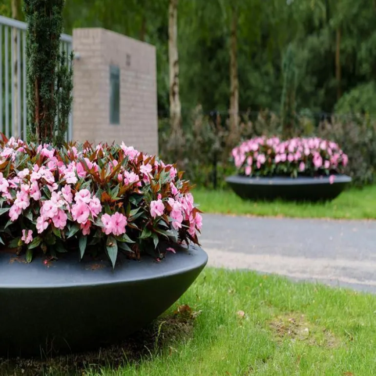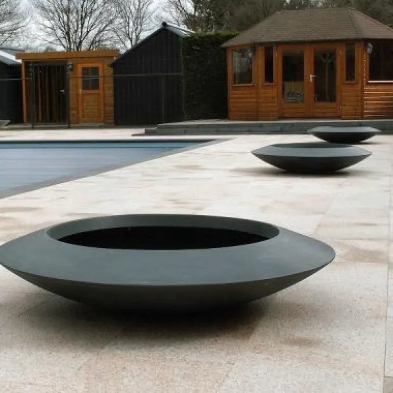 Store runde ufo krukker i frostsikker glasfiber / polyester – Ø.120cm + Ø.200cm