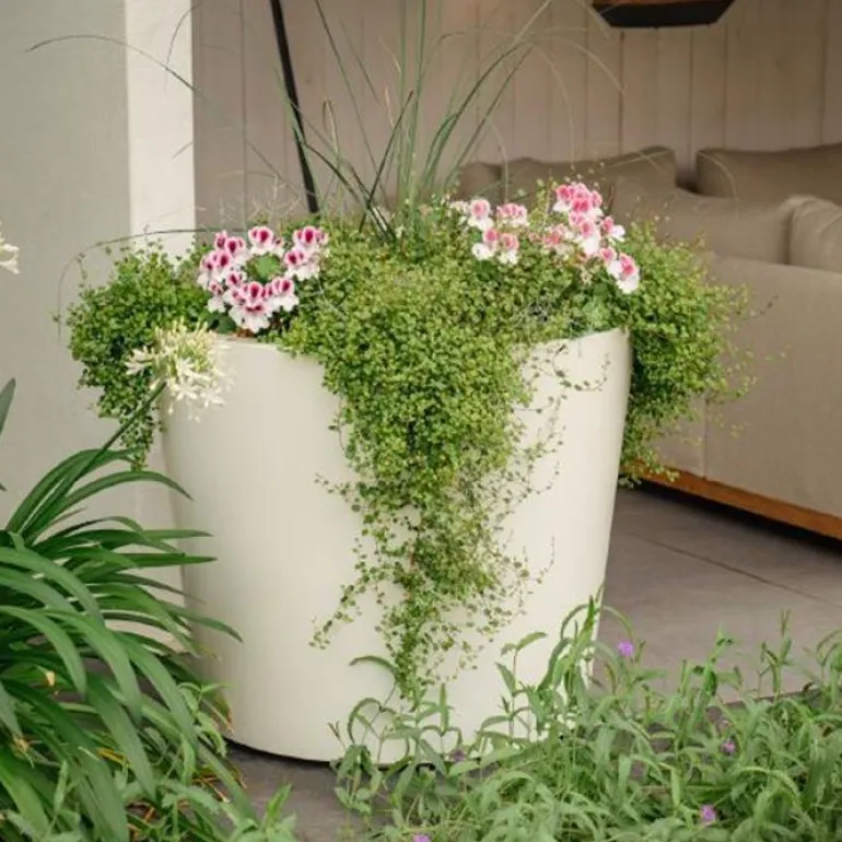 Topkvalitet til store planter og mindre træer. Disse store krukker i RAL7021 antrazit er gennemfarvede i godset og taber derfor ikke farve – derudover med dobbeltbukket kant foroven for ekstra styrke. Krukkerne er frostsikre og i markedets bedste kvalitet af fibreglass/glasfiber/polyester.
