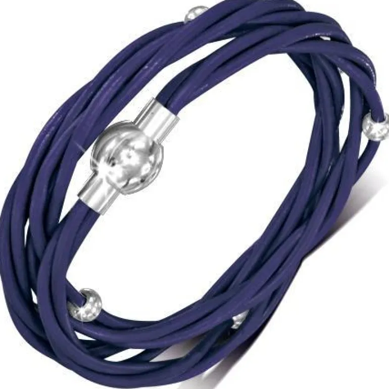Fedt specielt vikle armbånd eller halskæde med flere strenge ægte indfarvet læder med små stålcharms og magnetlås i 316L rustfri stål.